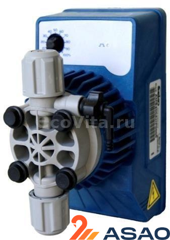 Аналоговый дозирующий насос Seko AMC 200 с постоянной и пропорциональной производительностью. Постоянная производительность регулируется вручную, а пропорциональная согласно внешнему цифровому сигналу (например, от расходомера). Отличаются невысоким энергопотреблением, так как электромагнит нуждается в энергии только при запуске насоса.