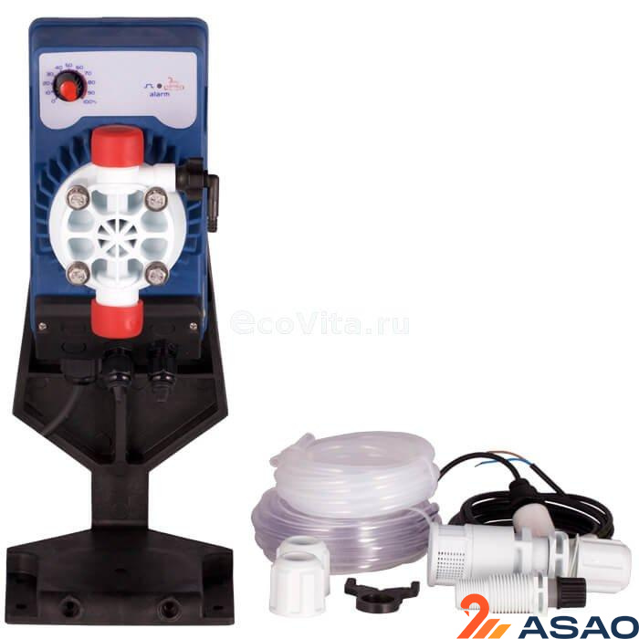 Аналоговый дозирующий насос Seko AMC 200 с датчиком уровня Lev-4 с постоянной и пропорциональной производительностью. Постоянная производительность регулируется вручную, а пропорциональная согласно внешнему цифровому сигналу (например, от расходомера). Отличаются невысоким энергопотреблением, так как электромагнит нуждается в энергии только при запуске насоса.