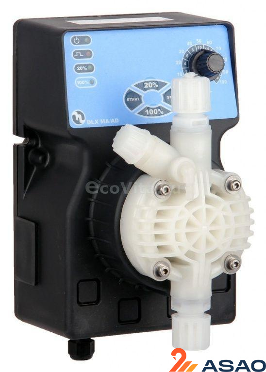 Мембранный дозирующий насос Etatron DLX-CD/M 2-20 с аналоговым управлением с постоянным дозирование. Двойная шкала регулировки производительности 0-100% и 0-20% для более точной регулировки производительности.