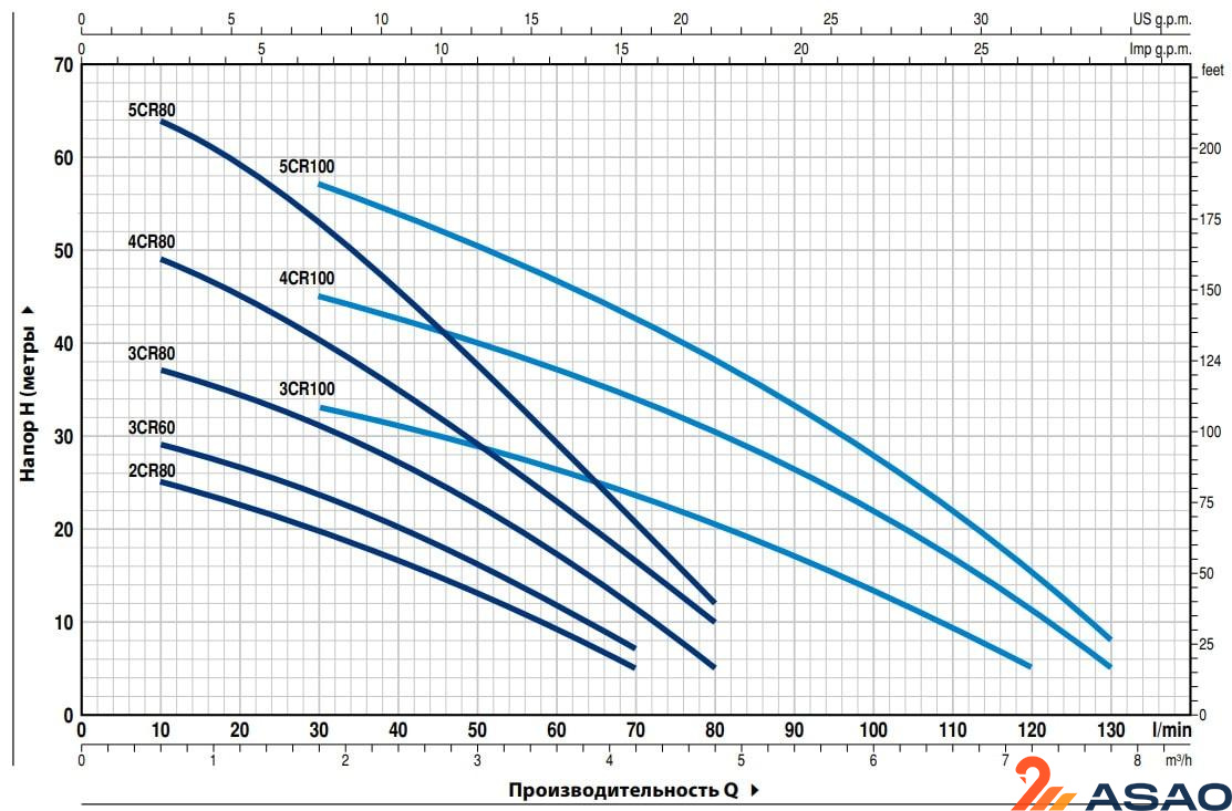 Серия 3-4CR включает в себя многоступенчатые электронасосы центробежного типа с корпусом насоса из нержавеющей стали, горизонтальным валом и с переменным числом рабочих колес; установленных в корпусе из нержавеющей стали. Рабочие колеса, установленные на одном и том же ведущем валу, вращаются внутри лопаточных диффузоров, которые обеспечивают движение жидкости на выходе каждого рабочего колеса по направлению к всасывающему патрубку следующего рабочего колеса. После прохождения через все рабочие колеса, установленные последовательно, жидкость выталкивается из насоса через нагнетательный патрубок, предусмотренный в корпусе насоса. Каждое рабочее колесо с соответствующим лопаточным диффузором составляют ступень нагнетания, которая, согласно принципу функционирования центробежных насосов, сообщает жидкости перепад давления, который суммируется с равными перепадами давления, сообщаемыми другими последовательными ступенями.